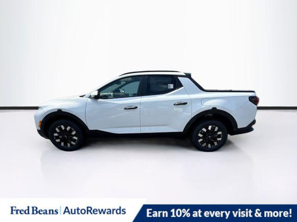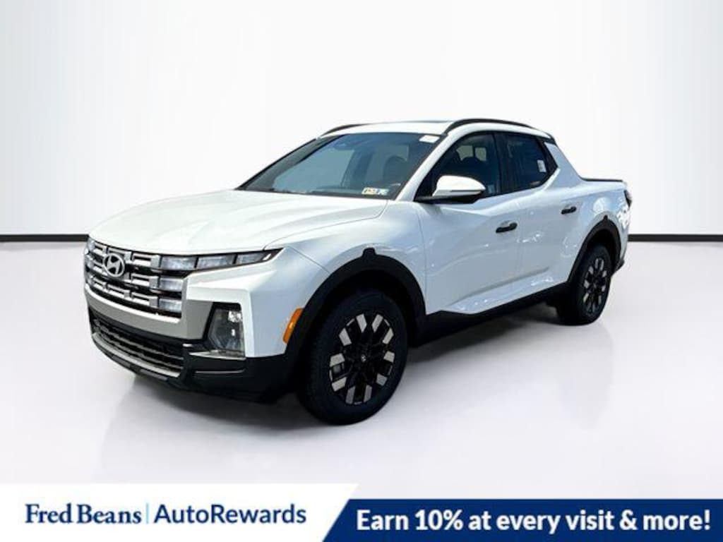 Atlas White 2025 Hyundai Santa Cruz SEL AWD 8-Speed Automatic with SHIFTRONIC 2.5L I4 18" x 7.5J Alloy Wheels, 4-Wheel Disc Brakes, 4.081 Axle Ratio, 6 Speakers, ABS brakes, Air Conditioning, All Season Fitted Liners, Alloy wheels, AM/FM radio: SiriusXM, Apple CarPlay & Android Auto, Auto High-beam Headlights, Auto-leveling suspension, Automatic temperature control, Bed Cargo Net, Brake assist, Bumpers: body-color, Cargo Net, Carpeted Floor Mats, Compass, Delay-off headlights, Driver door bin, Driver vanity mirror, Dual front impact airbags, Dual front side impact airbags, Electronic Stability Control, Emergency communication system: Bluelink+, Exterior Parking Camera Rear, First Aid Kit, Four wheel independent suspension, Front anti-roll bar, Front Bucket Seats, Front Center Armrest, Front dual zone A/C, Front reading lights, Fully automatic headlights, H-Tex Leatherette Seat Trim, Heated door mirrors, Heated Front Bucket Seats, Heated front seats, Illuminated entry, Low tire pressure warning, Occupant sensing airbag, Option Group 01, Outside temperature display, Overhead airbag, Overhead console, Panic alarm, Passenger door bin, Passenger vanity mirror, Power door mirrors, Power driver seat, Power moonroof, Power steering, Power windows, Radio data system, Radio: AM/FM/HD Audio System, Rear anti-roll bar, Rear reading lights, Rear seat center armrest, Rear side impact airbag, Rear step bumper, Rear window defroster, Remote keyless entry, Security system, Speed control, Speed-sensing steering, Split folding rear seat, Spoiler, Steering wheel mounted audio controls, Tachometer, Telescoping steering wheel, Tilt steering wheel, Traction control, Trip computer, Turn signal indicator mirrors, Variably intermittent wipers.