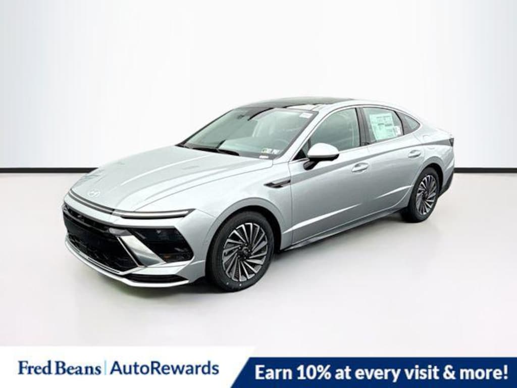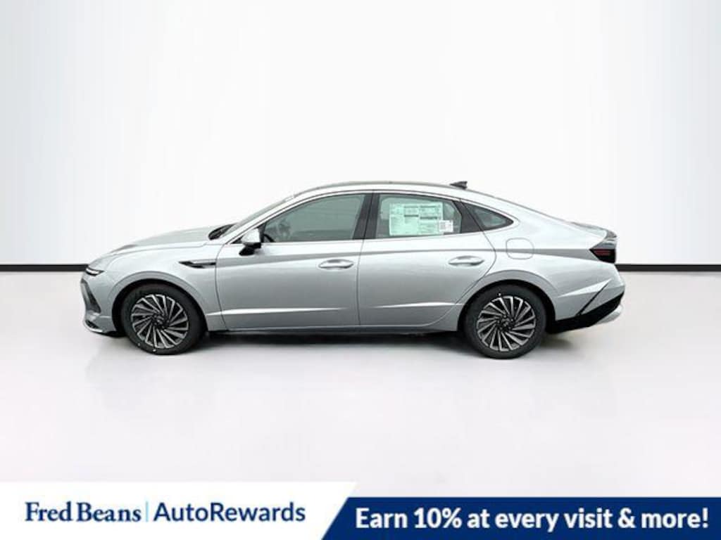 Aero Silver 2025 Hyundai Sonata Hybrid Limited FWD 6-Speed Automatic with Shiftronic I4 I4, 12 Speakers, 17" x 7.0J Aluminum Alloy Wheels, 4-Wheel Disc Brakes, ABS brakes, Air Conditioning, All-Season Fitted Liners, Alloy wheels, AM/FM radio: SiriusXM, Apple CarPlay & Android Auto, Auto High-beam Headlights, Auto-dimming Rear-View mirror, Automatic temperature control, Brake assist, Bumpers: body-color, Cargo Tray, Carpeted Floor Mats, Delay-off headlights, Driver door bin, Driver vanity mirror, Dual front impact airbags, Dual front side impact airbags, Electronic Stability Control, Emergency communication system: Bluelink+, First Aid Kit, Four wheel independent suspension, Front anti-roll bar, Front Bucket Seats, Front Center Armrest, Front dual zone A/C, Front reading lights, Fully automatic headlights, Heads-Up Display, Heated & Ventilated Front Bucket Seats, Heated door mirrors, Heated front seats, Heated steering wheel, Illuminated entry, Knee airbag, Lane Departure Warning System, Leather Seating Surfaces, Leather steering wheel, Low tire pressure warning, Memory seat, Navigation System, Occupant sensing airbag, Option Group 01, Outside temperature display, Overhead airbag, Overhead console, Panic alarm, Passenger door bin, Passenger vanity mirror, Power door mirrors, Power driver seat, Power moonroof, Power passenger seat, Power steering, Power windows, Radio data system, Radio: AM/FM/HD/SiriusXM, Rain sensing wipers, Rear anti-roll bar, Rear seat center armrest, Rear side impact airbag, Rear window defroster, Remote keyless entry, Security system, Speed control, Speed-sensing steering, Speed-Sensitive Wipers, Split folding rear seat, Spoiler, Steering wheel mounted audio controls, Tachometer, Telescoping steering wheel, Tilt steering wheel, Traction control, Trip computer, Variably intermittent wipers, Ventilated front seats, I4.