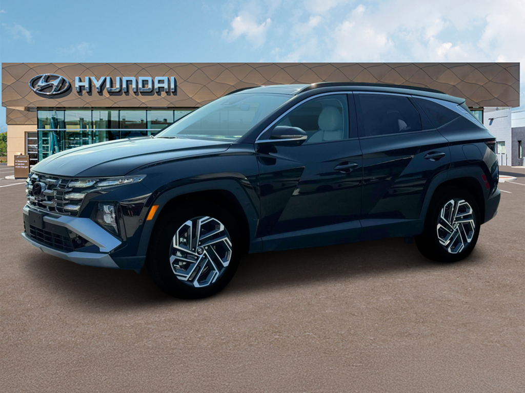 Phantom Black 2025 Hyundai Tucson Limited AWD 8-Speed Automatic with SHIFTRONIC 2.5L I4 DGI DOHC 16V LEV3-SULEV30 187hp 19" Alloy Wheels, 4-Wheel Disc Brakes, 8 Speakers, ABS brakes, Air Conditioning, All Season Fitted Liners, Alloy wheels, AM/FM radio: SiriusXM, Apple CarPlay & Android Auto, Auto High-beam Headlights, Auto-dimming Rear-View mirror, Automatic temperature control, Brake assist, Bumpers: body-color, Cargo Blocks, Cargo Cover, Carpeted Floor Mats, Cross Rails, Delay-off headlights, Driver door bin, Driver vanity mirror, Dual front impact airbags, Dual front side impact airbags, Electronic Stability Control, Emergency communication system: Bluelink+, First Aid Kit, Four wheel independent suspension, Front anti-roll bar, Front Bucket Seats, Front Center Armrest, Front dual zone A/C, Front reading lights, Fully automatic headlights, Garage door transmitter: HomeLink, Heads-Up Display, Heated & Ventilated Front Bucket Seats, Heated door mirrors, Heated front seats, Heated rear seats, Heated steering wheel, Illuminated entry, Leather steering wheel, Leather-Trimmed Seat Trim, Low tire pressure warning, Memory seat, Navigation System, Occupant sensing airbag, Option Group 01, Outside temperature display, Overhead airbag, Overhead console, Panic alarm, Passenger door bin, Passenger vanity mirror, Power door mirrors, Power driver seat, Power Liftgate, Power moonroof, Power passenger seat, Power steering, Power windows, Radio data system, Radio: Bose Premium w/AM/FM/HD Audio System, Rain sensing wipers, Rear anti-roll bar, Rear reading lights, Rear seat center armrest, Rear side impact airbag, Rear window defroster, Rear window wiper, Remote keyless entry, Security system, Severe Weather Kit, Speed control, Split folding rear seat, Spoiler, Steering wheel mounted audio controls, Tachometer, Telescoping steering wheel, Tilt steering wheel, Traction control, Trip computer, Turn signal indicator mirrors, Variably intermittent wipers, Ventilated front seats.