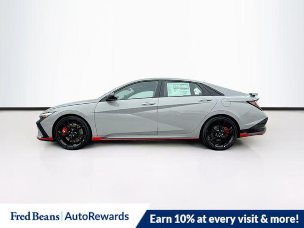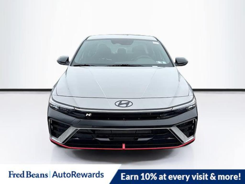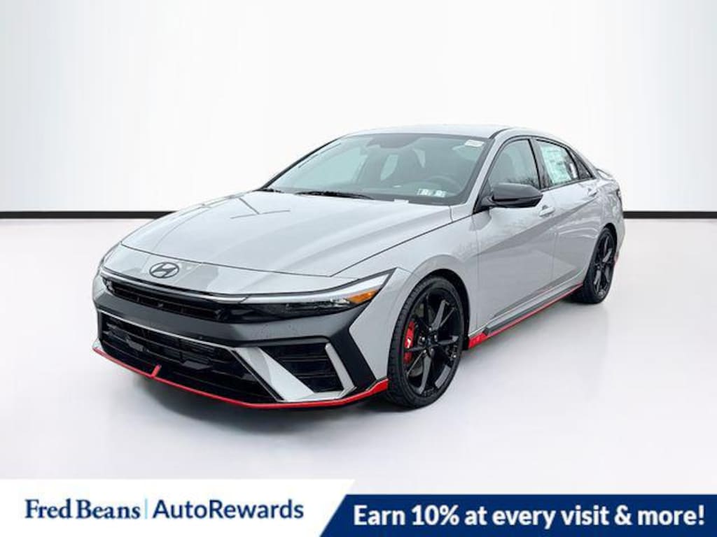 Cyber Gray 2026 Hyundai Elantra N FWD 6-Speed Manual 2.0L 4-Cylinder Turbocharged 4-Wheel Disc Brakes, 8 Speakers, ABS brakes, Air Conditioning, Alloy wheels, AM/FM radio: SiriusXM, Apple CarPlay & Android Auto, Auto High-beam Headlights, Automatic temperature control, Brake assist, Bumpers: body-color, Cargo Net, Cargo Tray, Compass, Delay-off headlights, Driver door bin, Driver vanity mirror, Dual front impact airbags, Dual front side impact airbags, Electronic Stability Control, Emergency communication system: None, Exterior Parking Camera Rear, First Aid Kit, Four wheel independent suspension, Front anti-roll bar, Front Bucket Seats, Front Center Armrest w/Storage, Front dual zone A/C, Front reading lights, Fully automatic headlights, Heated door mirrors, Heated front seats, Illuminated entry, Leather Shift Knob, Leather steering wheel, Leather/Alcantara Seat Trim, Low tire pressure warning, N Light Heated Sport Bucket Seats, Navigation System, Occupant sensing airbag, Option Group 01, Outside temperature display, Overhead airbag, Overhead console, Panic alarm, Passenger door bin, Passenger vanity mirror, Power door mirrors, Power steering, Power windows, Radio: Bose AM/FM/HD/SXM Audio System, Rear Bumper Applique, Rear side impact airbag, Rear window defroster, Remote keyless entry, Security system, Speed control, Speed-sensing steering, Spoiler, Steering wheel mounted audio controls, Tachometer, Telescoping steering wheel, Tilt steering wheel, Traction control, Trip computer, Turn signal indicator mirrors, Variably intermittent wipers, Wheels: 19" x 8.0" Forged Alloy.