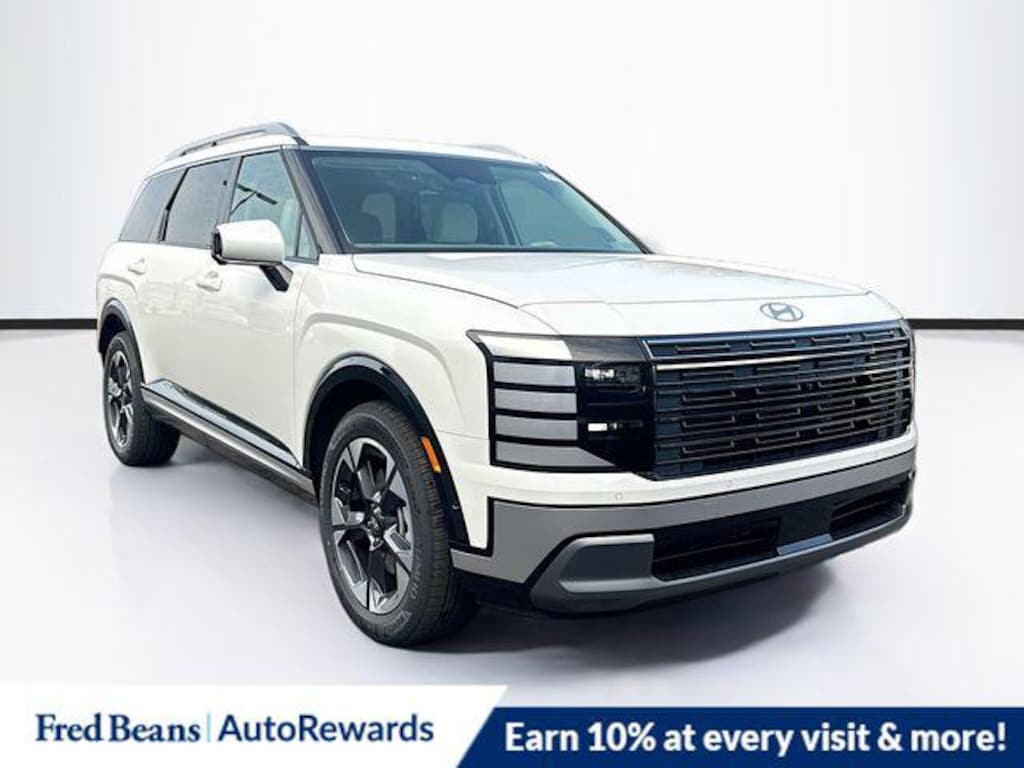Creamy White Pearl 2026 Hyundai Palisade Limited AWD 8-Speed Automatic V6 100W Charging Cable, 14 Speakers, 3rd row seats: split-bench, 4-Wheel Disc Brakes, ABS brakes, Air Conditioning, Alloy wheels, AM/FM radio: SiriusXM, Apple CarPlay & Android Auto, Audio memory, Auto High-beam Headlights, Auto-dimming door mirrors, Auto-dimming Rear-View mirror, Auto-leveling suspension, Automatic temperature control, Brake assist, Bumpers: body-color, Cargo Net, Carpeted Floor Mats, Compass, Cross Rails, Delay-off headlights, Driver door bin, Driver vanity mirror, Dual front impact airbags, Dual front side impact airbags, Electronic Stability Control, Emergency communication system: None, Exterior Parking Camera Rear, First Aid Kit, Four wheel independent suspension, Front anti-roll bar, Front Bucket Seats, Front Center Armrest, Front dual zone A/C, Front reading lights, Fully automatic headlights, Garage door transmitter: HomeLink, Genuine wood console insert, Genuine wood dashboard insert, Heated and Ventilated Front Bucket Seats, Heated door mirrors, Heated front seats, Heated rear seats, Heated steering wheel, HVAC memory, Illuminated entry, Knee airbag, Leather Seat Trim, Leather steering wheel, Low tire pressure warning, Memory seat, Navigation System, Occupant sensing airbag, Option Group 01, Outside temperature display, Overhead airbag, Overhead console, Panic alarm, Passenger door bin, Passenger vanity mirror, Power door mirrors, Power driver seat, Power Liftgate, Power moonroof, Power passenger seat, Power steering, Power windows, Radio data system, Radio: Infotainment Navigation System, Rear air conditioning, Rear anti-roll bar, Rear audio controls, Rear reading lights, Rear side impact airbag, Rear window defroster, Rear window wiper, Reclining 3rd row seat, Remote keyless entry, Security system, Speed control, Split folding rear seat, Spoiler, Steering wheel mounted audio controls, Tachometer, Telescoping steering wheel, Tilt steering wheel, Traction control, Trip computer, Turn signal indicator mirrors, Variably intermittent wipers, Ventilated front seats, Ventilated rear seats, Wheels: 20" x 8.0J Alloy. Price includes: $750 - Hyundai HMF Dealer Choice : $750 discount and 5.39% APR for 24 months. $44.05 per $1000 financed. Available to well qualified buyers who finance through Hyundai Motor Finance. H704. Exp. 03/02/2026