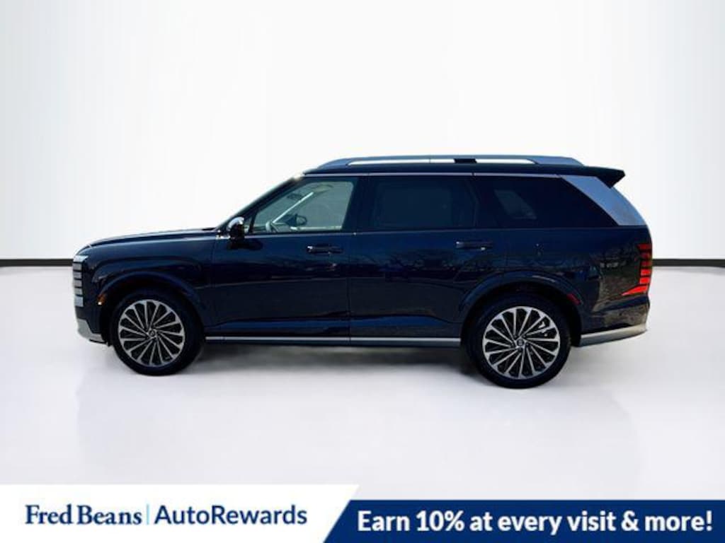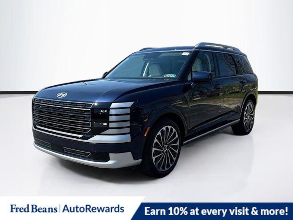 Classy Blue Pearl 2026 Hyundai Palisade Hybrid Calligraphy AWD 6-Speed Automatic 2.5L Turbocharged GDI 4-Cylinder Hybrid 2.5L Turbocharged GDI 4-Cylinder Hybrid, 14 Speakers, 3rd row seats: split-bench, 4-Wheel Disc Brakes, ABS brakes, Air Conditioning, Alloy wheels, AM/FM radio: SiriusXM, Apple CarPlay & Android Auto, Audio memory, Auto High-beam Headlights, Auto-dimming door mirrors, Auto-dimming Rear-View mirror, Auto-leveling suspension, Automatic temperature control, Brake assist, Bumpers: body-color, Carpeted Floor Mats, Compass, Delay-off headlights, Driver door bin, Driver vanity mirror, Dual front impact airbags, Dual front side impact airbags, Electronic Stability Control, Emergency communication system: None, Exterior Parking Camera Rear, Four wheel independent suspension, Front anti-roll bar, Front Bucket Seats, Front Center Armrest, Front dual zone A/C, Front reading lights, Fully automatic headlights, Garage door transmitter: HomeLink, Genuine wood console insert, Genuine wood dashboard insert, Heads-Up Display, Heated and Ventilated Front Bucket Seats, Heated door mirrors, Heated front seats, Heated rear seats, Heated steering wheel, HVAC memory, Illuminated entry, Knee airbag, Leather steering wheel, Low tire pressure warning, Memory seat, Navigation System, Occupant sensing airbag, Option Group 01, Outside temperature display, Overhead airbag, Overhead console, Panic alarm, Passenger door bin, Passenger vanity mirror, Power door mirrors, Power driver seat, Power Liftgate, Power moonroof, Power passenger seat, Power steering, Power windows, Premium Nappa Leather Seat Trim, Radio data system, Radio: Infotainment Navigation System, Rain sensing wipers, Rear air conditioning, Rear anti-roll bar, Rear audio controls, Rear reading lights, Rear side impact airbag, Rear window defroster, Rear window wiper, Reclining 3rd row seat, Remote keyless entry, Security system, Speed control, Split folding rear seat, Spoiler, Steering wheel mounted audio controls, Tachometer, Telescoping steering wheel, Tilt steering wheel, Traction control, Trip computer, Turn signal indicator mirrors, Variably intermittent wipers, Ventilated front seats, Ventilated rear seats, Wheels: 21" x 8.5J Alloy, 2.5L Turbocharged GDI 4-Cylinder Hybrid.