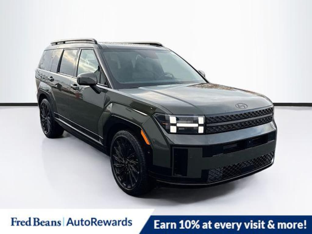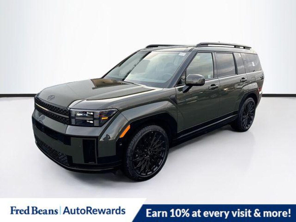 Rockwood Green 2026 Hyundai Santa Fe Calligraphy AWD 8-Speed Automatic with SHIFTRONIC 2.5L I4 AWD, Black Leather, 12 Speakers, 3rd row seats: bench, 4-Wheel Disc Brakes, ABS brakes, Air Conditioning, All Season Fitted Liners, Alloy wheels, AM/FM radio: SiriusXM, Apple CarPlay & Android Auto, Auto High-beam Headlights, Auto-dimming Rear-View mirror, Automatic temperature control, Brake assist, Bumpers: body-color, Cargo Net, Carpeted Floor Mats, Delay-off headlights, Driver door bin, Driver vanity mirror, Dual front impact airbags, Dual front side impact airbags, Electronic Stability Control, Emergency communication system, Exterior Parking Camera Rear, First Aid Kit, Four wheel independent suspension, Front anti-roll bar, Front Bucket Seats, Front Center Armrest, Front dual zone A/C, Front reading lights, Fully automatic headlights, Garage door transmitter: HomeLink, Heads-Up Display, Heated and Ventilated Front Bucket Seats, Heated door mirrors, Heated front seats, Heated rear seats, Heated steering wheel, Illuminated entry, Knee airbag, Leather steering wheel, Low tire pressure warning, Memory seat, Navigation System, Occupant sensing airbag, Option Group 01, Outside temperature display, Overhead airbag, Overhead console, Panic alarm, Passenger door bin, Passenger vanity mirror, Power door mirrors, Power driver seat, Power Liftgate, Power moonroof, Power passenger seat, Power steering, Power windows, Quilted Premium Nappa Leather Seat Trim, Radio: AM/FM/HD Bose Premium Audio System, Rain sensing wipers, Rear anti-roll bar, Rear side impact airbag, Rear window defroster, Rear window wiper, Remote keyless entry, Roadside Assistance Kit, Security system, Speed control, Speed-sensing steering, Split folding rear seat, Spoiler, Steering wheel mounted audio controls, Tachometer, Telescoping steering wheel, Tilt steering wheel, Traction control, Trip computer, Turn signal indicator mirrors, Variably intermittent wipers, Ventilated front seats, Wheels: 21" x 8.5J Unique Dark Finish Alloy, AWD, Black Leather. Price includes: $3500 - Hyundai HMF Dealer Choice : $3500 discount and 5.49% APR for 24 months. $44.09 per $1000 financed. Available to well qualified buyers who finance through Hyundai Motor Finance. H704. Exp. 01/02/2026