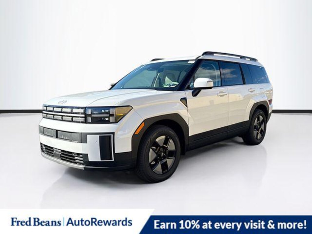 Serenity White 2026 Hyundai Santa Fe Hybrid SEL AWD 6-Speed Automatic with Shiftronic I4 I4, 18" x 7.5J Alloy Wheels, 3rd row seats: bench, 4-Wheel Disc Brakes, 6 Speakers, ABS brakes, Air Conditioning, Alloy wheels, AM/FM radio: SiriusXM, Apple CarPlay & Android Auto, Auto High-beam Headlights, Automatic temperature control, Brake assist, Bumpers: body-color, Cargo Blocks, Cargo Cover/Screen, Cargo Net, Cargo Tray, Carpeted Floor Mats, Delay-off headlights, Driver door bin, Driver vanity mirror, Dual front impact airbags, Dual front side impact airbags, Electronic Stability Control, Emergency communication system, Exterior Parking Camera Rear, First Aid Kit, Four wheel independent suspension, Front anti-roll bar, Front Bucket Seats, Front Center Armrest, Front dual zone A/C, Front reading lights, Fully automatic headlights, H-Tex Leatherette Seat Trim, Heated door mirrors, Heated Front Bucket Seats, Heated front seats, Illuminated entry, Knee airbag, Leather steering wheel, Low tire pressure warning, Mudguards, Occupant sensing airbag, Option Group 01, Outside temperature display, Overhead airbag, Overhead console, Panic alarm, Passenger door bin, Passenger vanity mirror, Power door mirrors, Power driver seat, Power Liftgate, Power steering, Power windows, Radio: AM/FM/HD Display Audio, Rear anti-roll bar, Rear seat center armrest, Rear side impact airbag, Rear window defroster, Rear window wiper, Remote keyless entry, Roadside Assistance Kit, Security system, Speed control, Speed-sensing steering, Split folding rear seat, Spoiler, Steering wheel mounted audio controls, Tachometer, Telescoping steering wheel, Tilt steering wheel, Traction control, Trip computer, Turn signal indicator mirrors, Variably intermittent wipers, I4. Price includes: $4250 - Hyundai HMF Dealer Choice : $4250 discount and 5.49% APR for 24 months. $44.09 per $1000 financed. Available to well qualified buyers who finance through Hyundai Motor Finance. H704. Exp. 12/01/2025