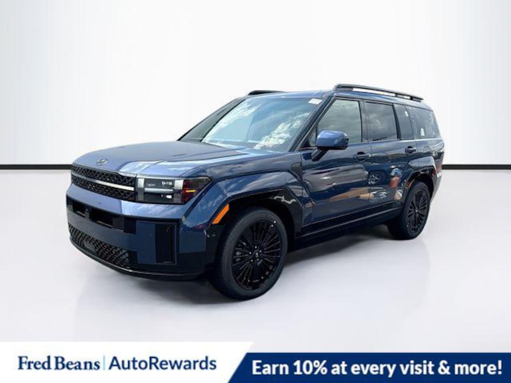 Atlantis Blue 2026 Hyundai Santa Fe Hybrid Calligraphy AWD 6-Speed Automatic with Shiftronic I4 I4, 12 Speakers, 3rd row seats: bench, 4-Wheel Disc Brakes, ABS brakes, Air Conditioning, Alloy wheels, AM/FM radio: SiriusXM, Apple CarPlay & Android Auto, Auto High-beam Headlights, Auto-dimming Rear-View mirror, Automatic temperature control, Brake assist, Bumpers: body-color, Cargo Blocks, Cargo Net, Cargo Tray, Carpeted Floor Mats, Delay-off headlights, Driver door bin, Driver vanity mirror, Dual front impact airbags, Dual front side impact airbags, Electronic Stability Control, Emergency communication system, Exterior Parking Camera Rear, First Aid Kit, Four wheel independent suspension, Front anti-roll bar, Front Bucket Seats, Front Center Armrest, Front dual zone A/C, Front reading lights, Fully automatic headlights, Garage door transmitter: HomeLink, Heads-Up Display, Heated & Ventilated Front Bucket Seats, Heated door mirrors, Heated front seats, Heated rear seats, Heated steering wheel, Illuminated entry, Knee airbag, Leather steering wheel, Low tire pressure warning, Memory seat, Navigation System, Occupant sensing airbag, Option Group 01, Outside temperature display, Overhead airbag, Overhead console, Panic alarm, Passenger door bin, Passenger vanity mirror, Power door mirrors, Power driver seat, Power Liftgate, Power moonroof, Power passenger seat, Power steering, Power windows, Quilted Premium Nappa Leather Seat Trim, Radio: AM/FM/HD Bose Premium Audio System, Rain sensing wipers, Rear anti-roll bar, Rear side impact airbag, Rear window defroster, Rear window wiper, Remote keyless entry, Roadside Assistance Kit, Roof Rack Crossbars, Security system, Speed control, Speed-sensing steering, Split folding rear seat, Spoiler, Steering wheel mounted audio controls, Tachometer, Telescoping steering wheel, Tilt steering wheel, Traction control, Trip computer, Turn signal indicator mirrors, Variably intermittent wipers, Ventilated front seats, Wheels: 20" x 8.5J Unique Dark Finish Alloy, I4. Price includes: $4250 - Hyundai HMF Dealer Choice: $4250 discount and 5.99% APR for 24 months. $44.32 per $1000 financed. Available to well qualified buyers who finance through Hyundai Motor Finance. H704. Exp. 11/03/2025