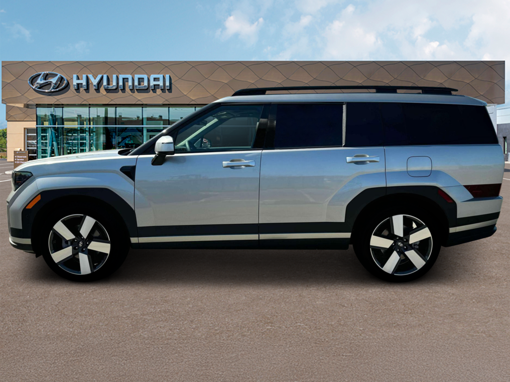 Shimmering Silver 2026 Hyundai Santa Fe Hybrid Limited AWD 6-Speed Automatic with Shiftronic I4 I4, 12 Speakers, 3rd row seats: bench, 4-Wheel Disc Brakes, ABS brakes, Air Conditioning, Alloy wheels, AM/FM radio: SiriusXM, Apple CarPlay & Android Auto, Auto High-beam Headlights, Auto-dimming Rear-View mirror, Automatic temperature control, Brake assist, Bumpers: body-color, Cargo Cover/Screen, Delay-off headlights, Driver door bin, Driver vanity mirror, Dual front impact airbags, Dual front side impact airbags, Electronic Stability Control, Emergency communication system, Exterior Parking Camera Rear, Four wheel independent suspension, Front anti-roll bar, Front Bucket Seats, Front Center Armrest, Front dual zone A/C, Front reading lights, Fully automatic headlights, Garage door transmitter: HomeLink, Heated and Ventilated Front Bucket Seats, Heated door mirrors, Heated front seats, Heated rear seats, Heated steering wheel, Illuminated entry, Knee airbag, Leather Seat Trim, Leather steering wheel, Low tire pressure warning, Memory seat, Navigation System, Occupant sensing airbag, Option Group 01, Outside temperature display, Overhead airbag, Overhead console, Panic alarm, Passenger door bin, Passenger vanity mirror, Power door mirrors, Power driver seat, Power Liftgate, Power moonroof, Power passenger seat, Power steering, Power windows, Radio: AM/FM/HD Bose Premium Audio System, Rain sensing wipers, Rear anti-roll bar, Rear side impact airbag, Rear window defroster, Rear window wiper, Remote keyless entry, Security system, Speed control, Speed-sensing steering, Split folding rear seat, Spoiler, Steering wheel mounted audio controls, Tachometer, Telescoping steering wheel, Tilt steering wheel, Traction control, Trip computer, Turn signal indicator mirrors, Variably intermittent wipers, Ventilated front seats, Wheels: 20" x 8.5J Alloy, I4.
