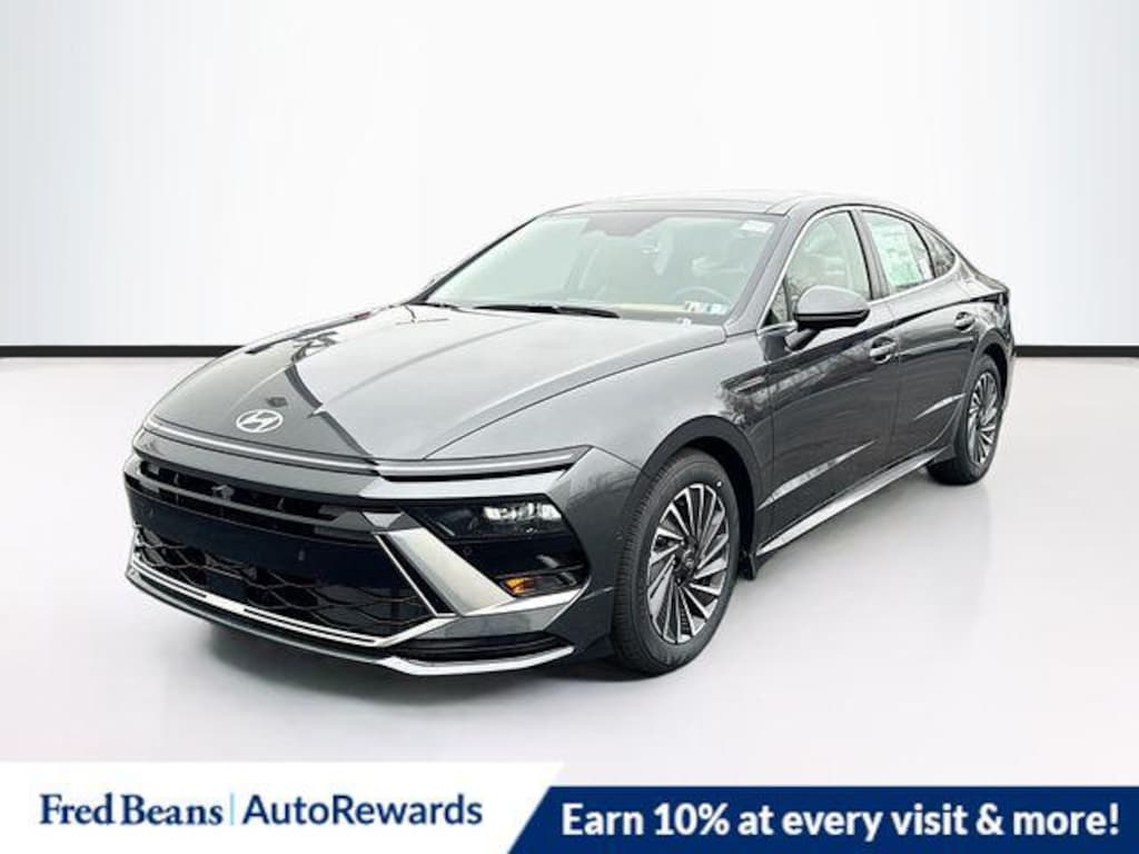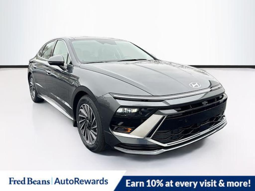Portofino Gray 2026 Hyundai Sonata Hybrid Limited FWD 6-Speed Automatic with Shiftronic I4 I4, 12 Speakers, 17" x 7.0J Aluminum Alloy Wheels, 4-Wheel Disc Brakes, ABS brakes, Air Conditioning, Alloy wheels, AM/FM radio: SiriusXM, Apple CarPlay & Android Auto, Auto High-beam Headlights, Auto-dimming Rear-View mirror, Automatic temperature control, Brake assist, Bumpers: body-color, Cargo Tray, Carpeted Floor Mats, Delay-off headlights, Driver door bin, Driver vanity mirror, Dual front impact airbags, Dual front side impact airbags, Electronic Stability Control, Emergency communication system: None, First Aid Kit, Four wheel independent suspension, Front anti-roll bar, Front Bucket Seats, Front Center Armrest, Front dual zone A/C, Front reading lights, Fully automatic headlights, Heads-Up Display, Heated and Ventilated Front Bucket Seats, Heated door mirrors, Heated front seats, Heated steering wheel, Illuminated entry, Knee airbag, Lane Departure Warning System, Leather steering wheel, Leather-Trimmed Seating Surfaces, Low tire pressure warning, Memory seat, Mud Guards, Navigation System, Occupant sensing airbag, Option Group 01, Outside temperature display, Overhead airbag, Overhead console, Panic alarm, Passenger door bin, Passenger vanity mirror, Power door mirrors, Power driver seat, Power moonroof, Power passenger seat, Power steering, Power windows, Radio data system, Radio: AM/FM/HD/SiriusXM/MP3/Navigation, Rain sensing wipers, Rear anti-roll bar, Rear seat center armrest, Rear side impact airbag, Rear window defroster, Remote keyless entry, Security system, Speed control, Speed-sensing steering, Speed-Sensitive Wipers, Split folding rear seat, Spoiler, Steering wheel mounted audio controls, Tachometer, Telescoping steering wheel, Tilt steering wheel, Traction control, Trip computer, Variably intermittent wipers, Ventilated front seats, I4.